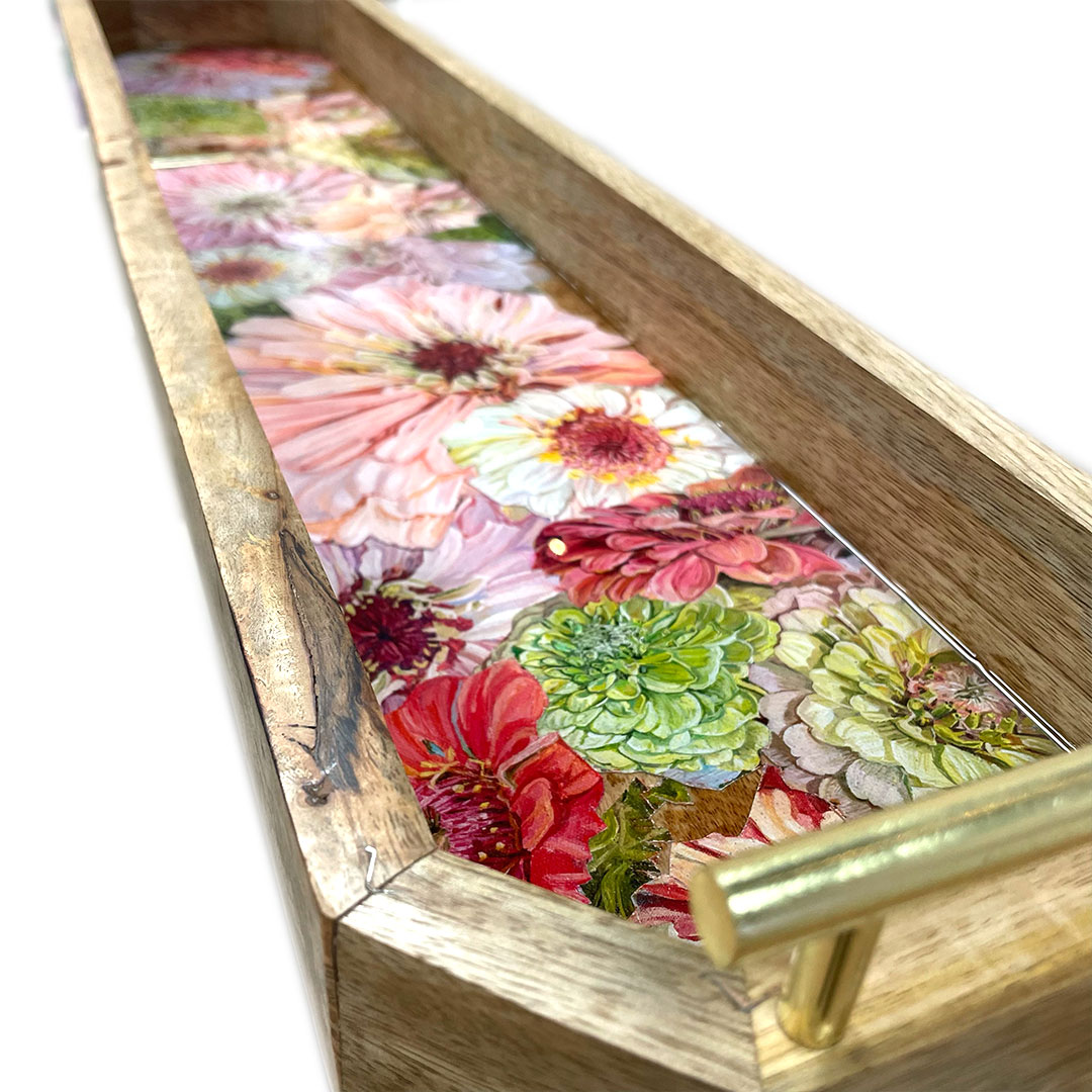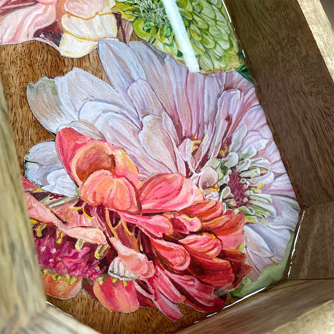 A resin-coated collage of archival-quality, hand-cut canvas prints from Laura’s original Hello Beautiful Collection. Each tray carefully is uniquely crafted to last and delight.