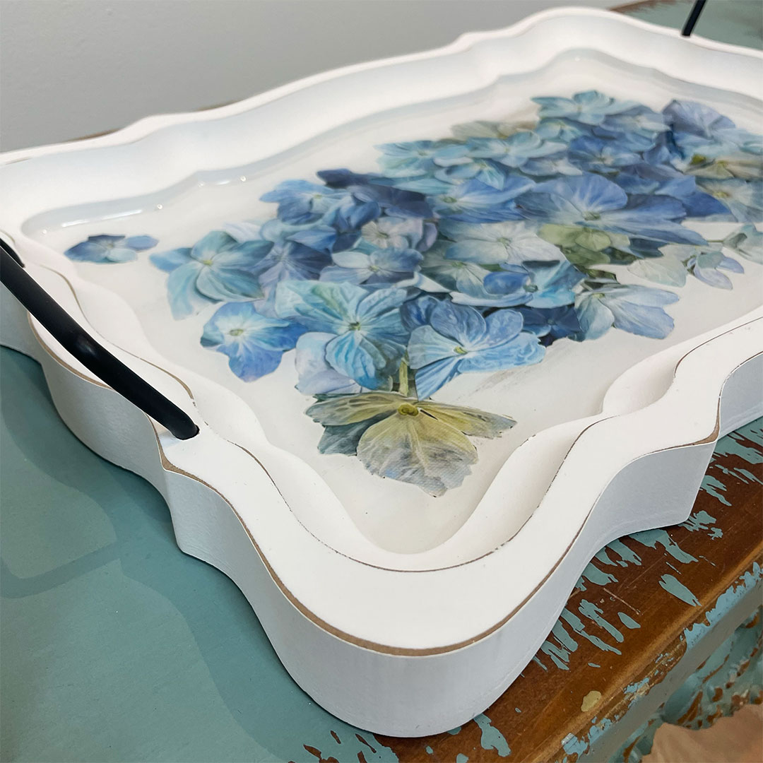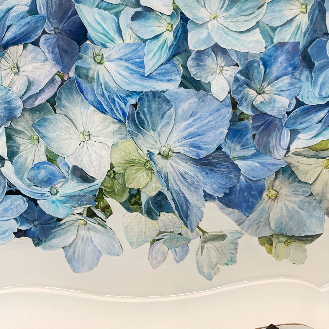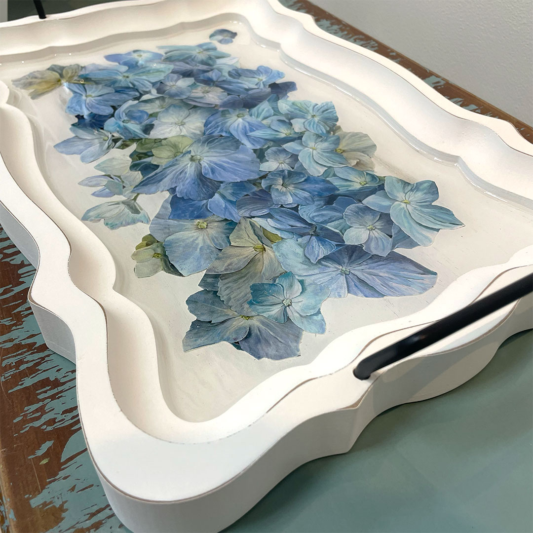 A resin-coated collage of archival-quality, hand-cut canvas prints from Laura’s original Something Blue Collection. Each tray carefully is uniquely crafted to last and delight.